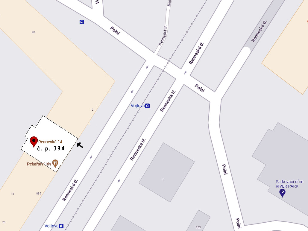 Parkování: zóna C (zpoplatněna 17–6). Parkovací dům je přes křižovatku.